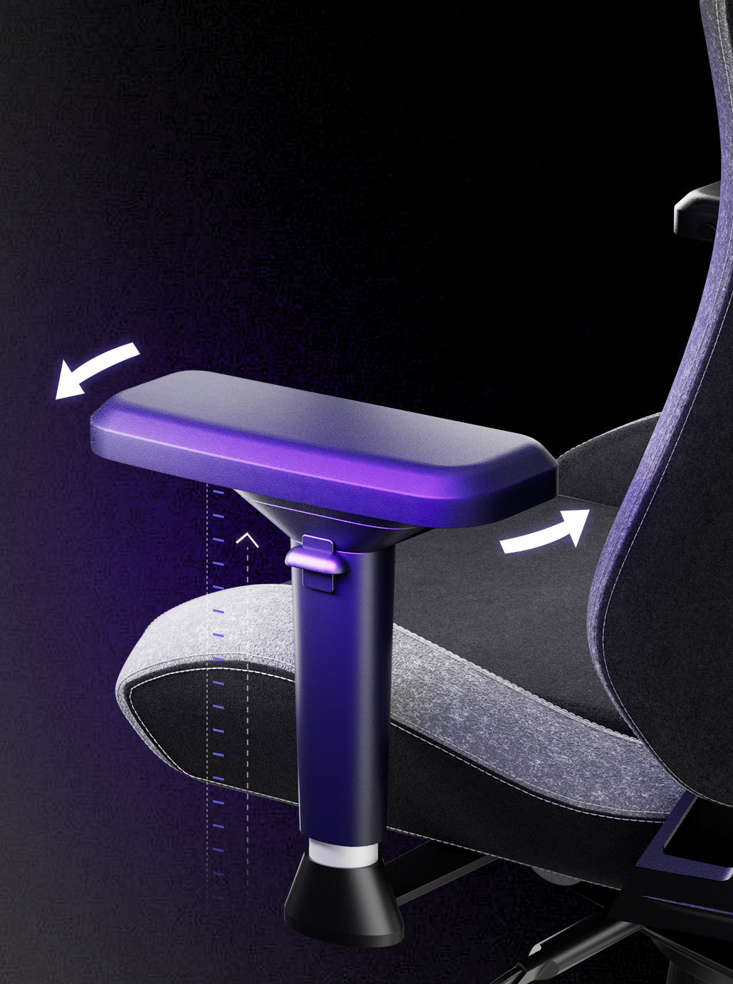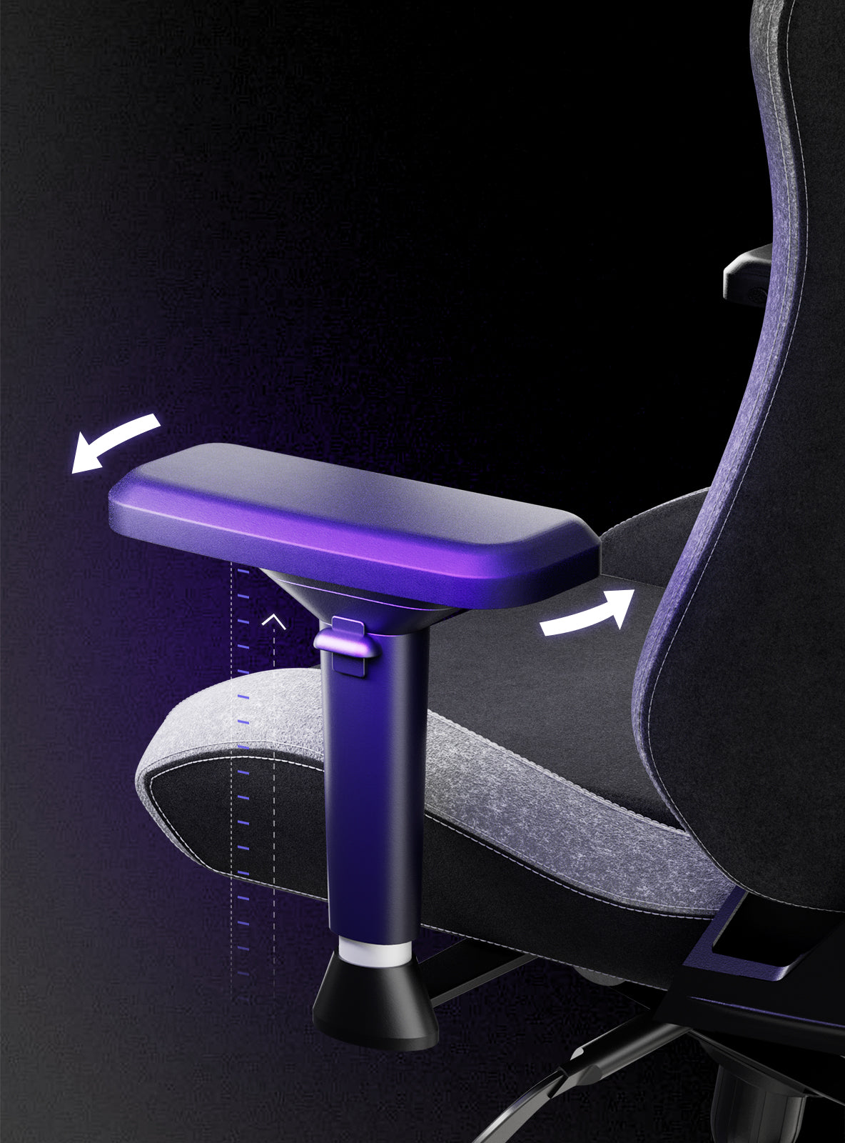4Dアームレストは複数の高さ調節が可能で、仕事に集中するときも休憩するときも、完璧に体を支えます。また、前後にスライドするので、オフィスでもリラックスタイムでも、どちらのニーズにも対応できます。さらに、アームレストの表面は左右に回転するため、多目的なサポートが可能です。